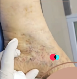 - ถ้าเป็นวงกว้าง หรือหลายจุดรอบข้อเท้า → สงสัย corona phlebectatica