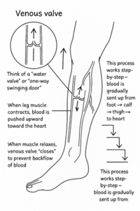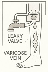 “A leaking valve is not blood escaping outside—it is a circulation imbalance causing blood to stay in the leg.”