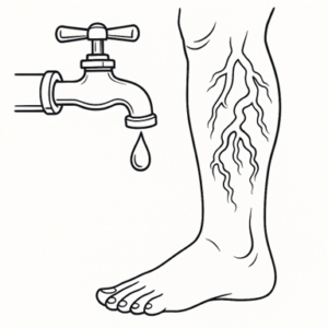This cartoon demonstrates the Analogy of varicose vein: A Dripping Water Valve